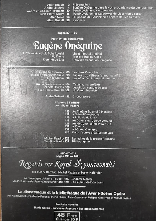 Tchaïkovsky Eugène Onéguine. Revue "Avant-scène" Opéra n° 43