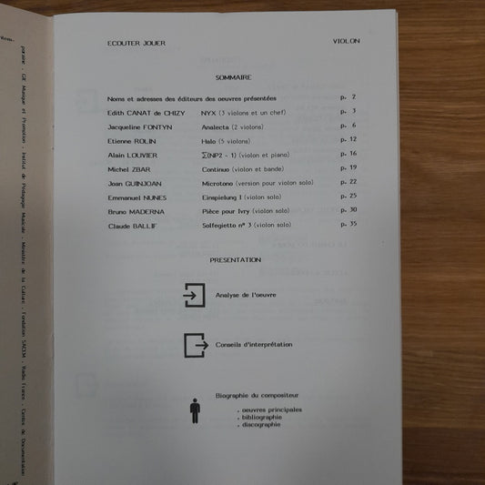 Ecouter jouer: violon. Oeuvres contemporaines partition