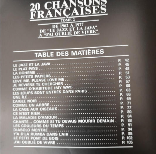 Songbook 20 chansons françaises de 1962 à 1977 tome 2 : de "Le Jazz et la java" à " J'ai oublié de vivre"