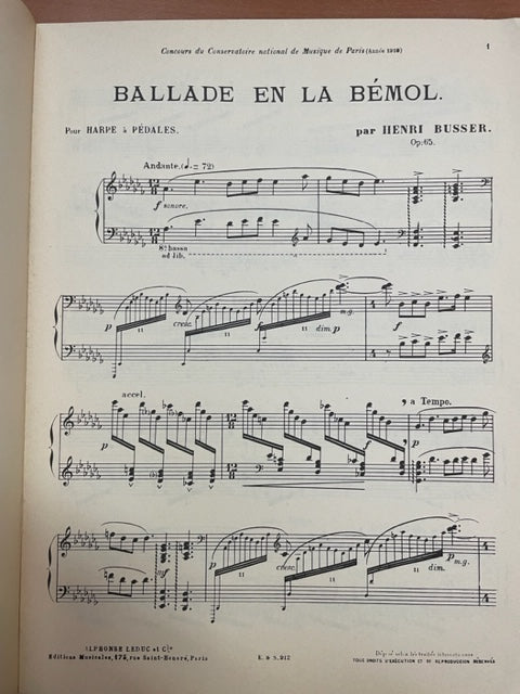 Henri Busser Ballade en la bémol pour harpe à pédales