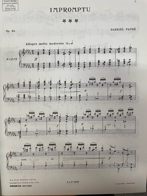 Gabriel Fauré Impromptu opus 86 pour la harpe