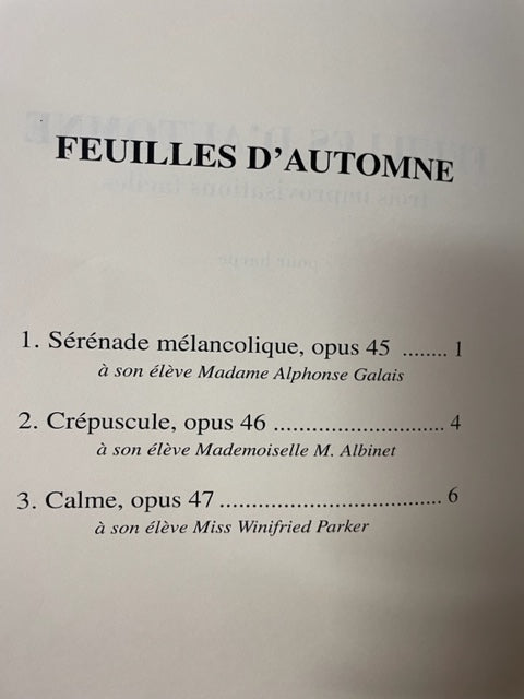 Alphonse Hasselmans Feuilles d'automne trois improvisations faciles pour harpe