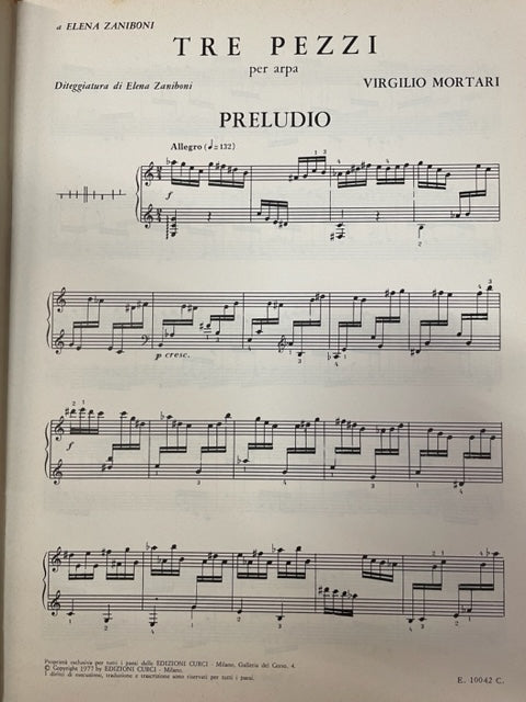 Virgilio Mortari Tre pezzi per arpa partition pour harpe