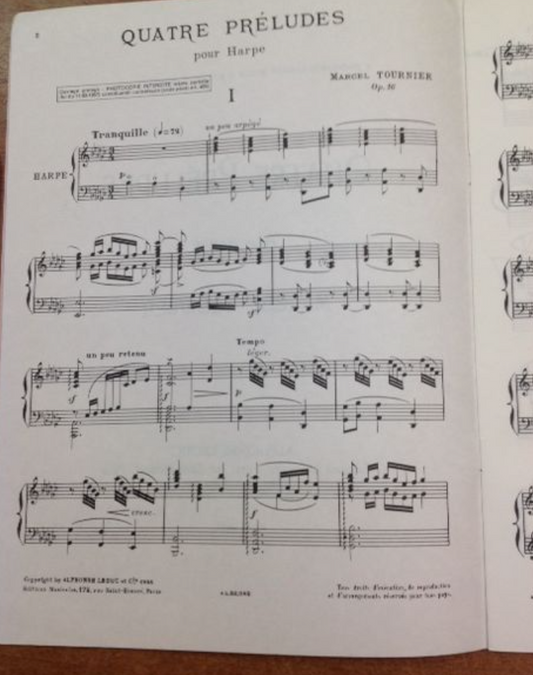 Marcel Tournier 4 Preludes Opus 16 pour harpe