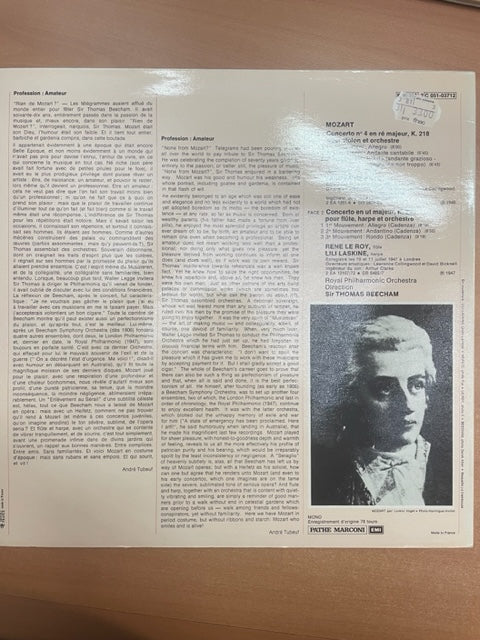 Vinyle Mozart Concerto n° 4 pour violon et orchestre et Concerto pour flûte et harpe