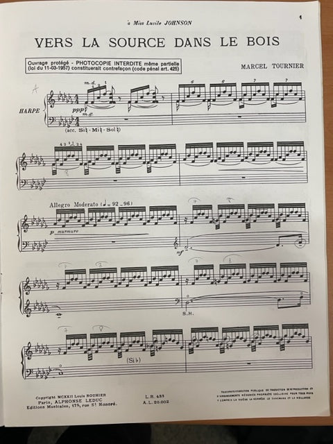 Marcel Tournier Vers la source dans le bois partition pour harpe