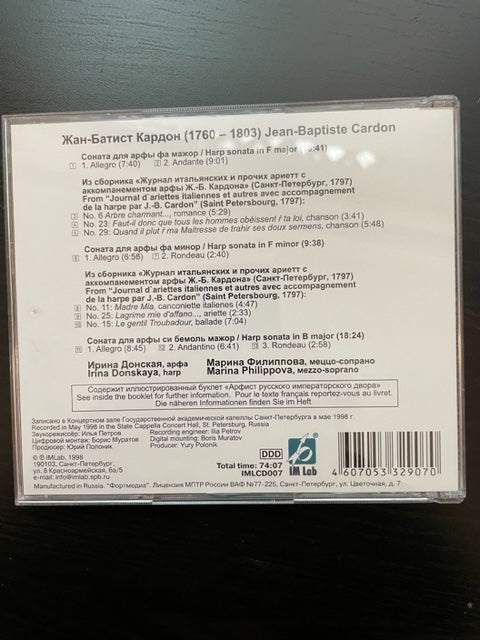 Cardon J-Baptiste CD Oeuvres diverses pour harpe et chant
