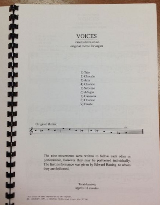 Stout Alastair Voices 9 miniatures on a original theme for organ partition pour orgue