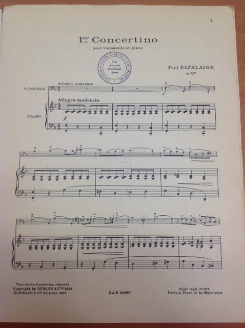 Bazelaire deux concertinos partition pour violoncelle et piano