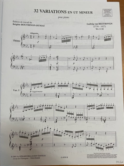 Beethoven 32 variations en ut mineur partition piano + analyse