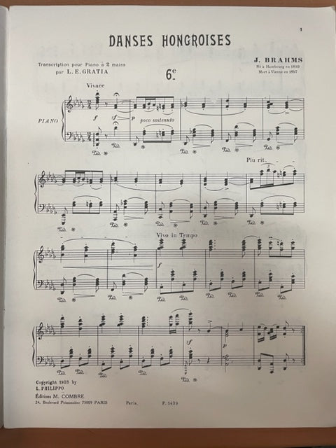 Johannes Brahms Danses hongroises n°6 à 10 pour piano