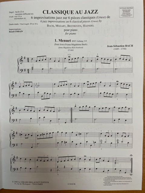 Benoit Urbain Classique au jazz 6 improvisations jazz volume 1 pour piano