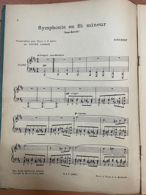 Franz Schubert Symphonie en si mineur inachevée transcription piano