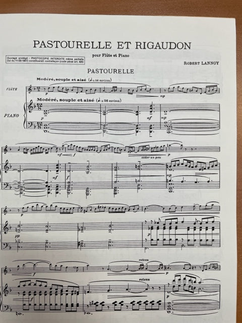 Robert Lannoy Pastourelle et Rigaudon partition pour flute et piano