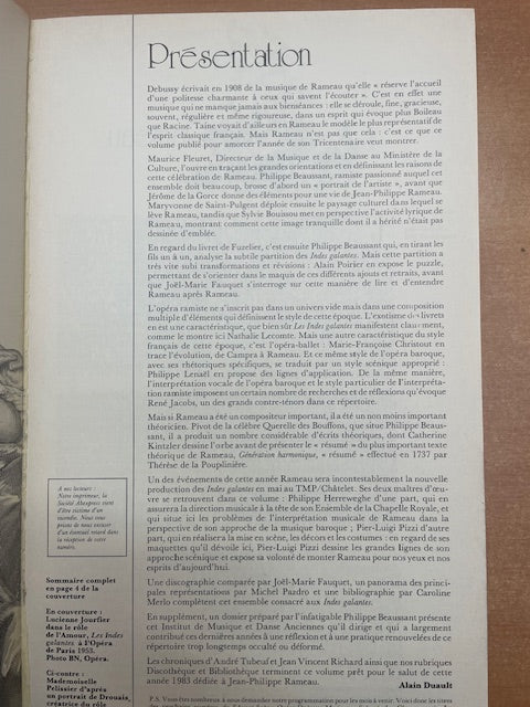 Jean Philipe Rameau Les Indes Galantes - Revue Avant-scène opéra n°46