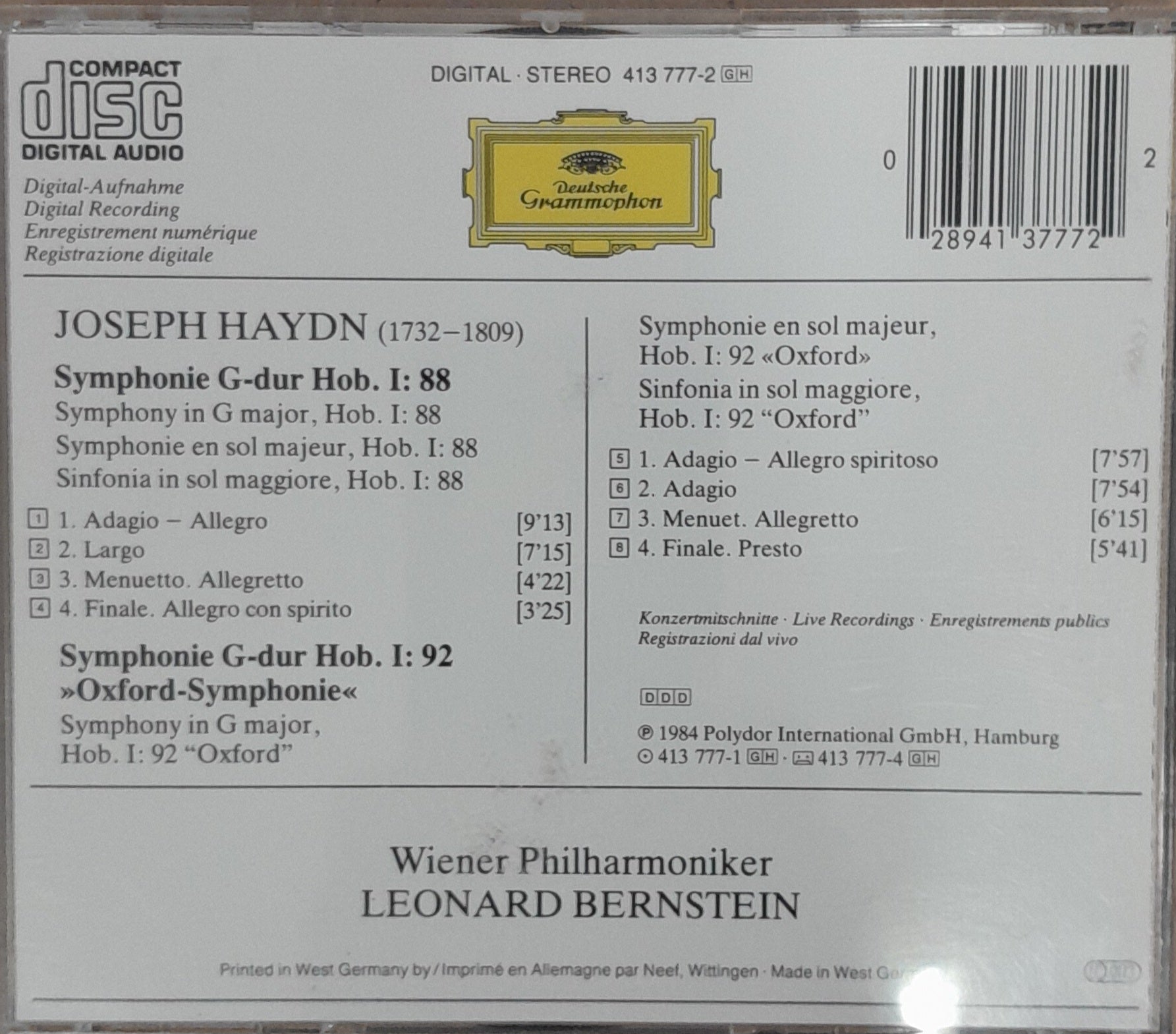 CD Leonard Bernstein Joseph Haydn Symphonie n°92 "Oxford" / Symphonie n° 88 en sol