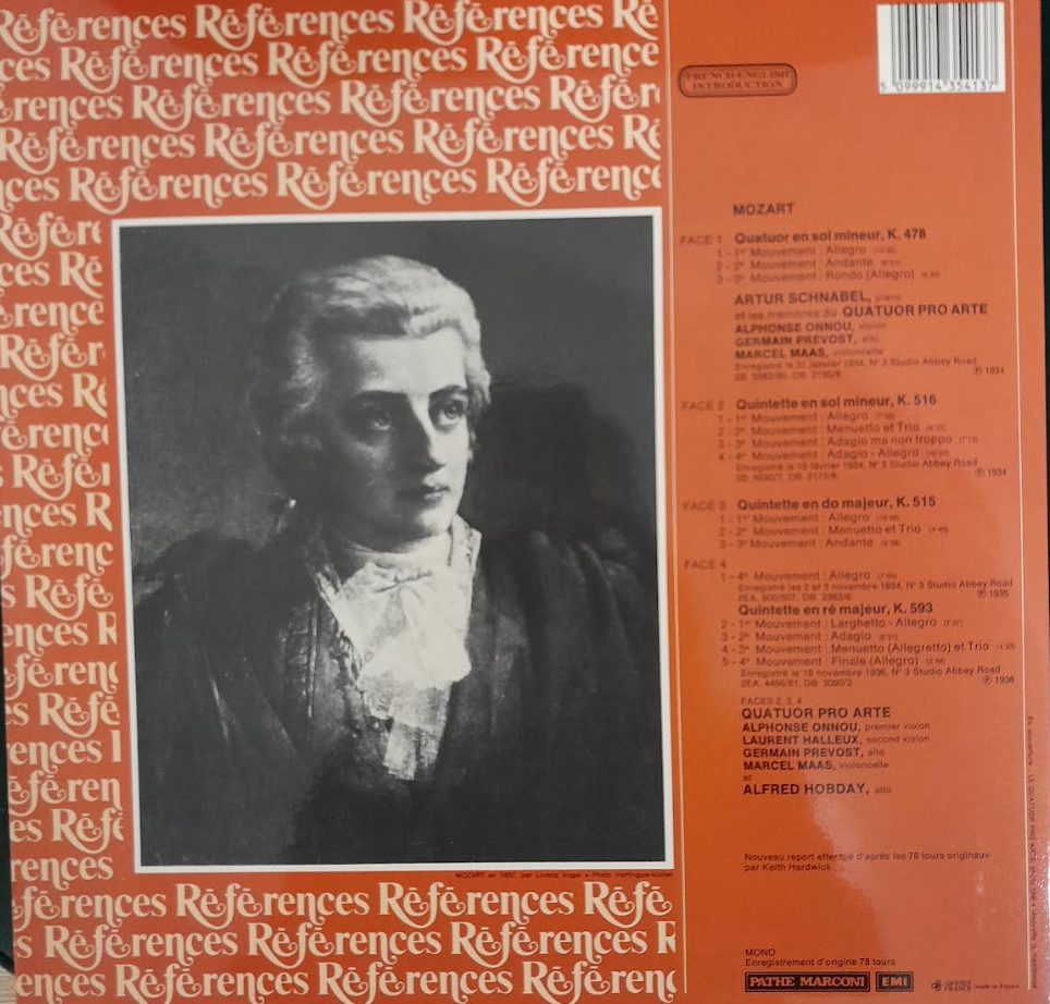 Coffret vinyle 2 disques Mozart Quatuor Pro Arte - Artur Schnabel, piano