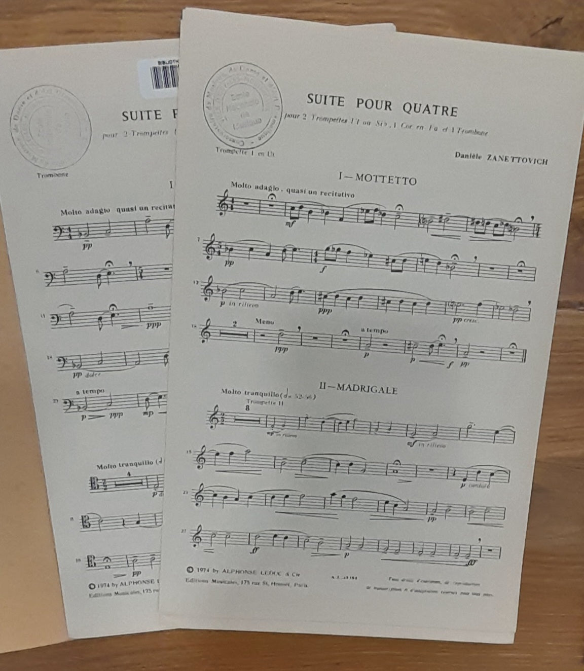 - Partition pour quatuor de cuivres aux éditions Leduc