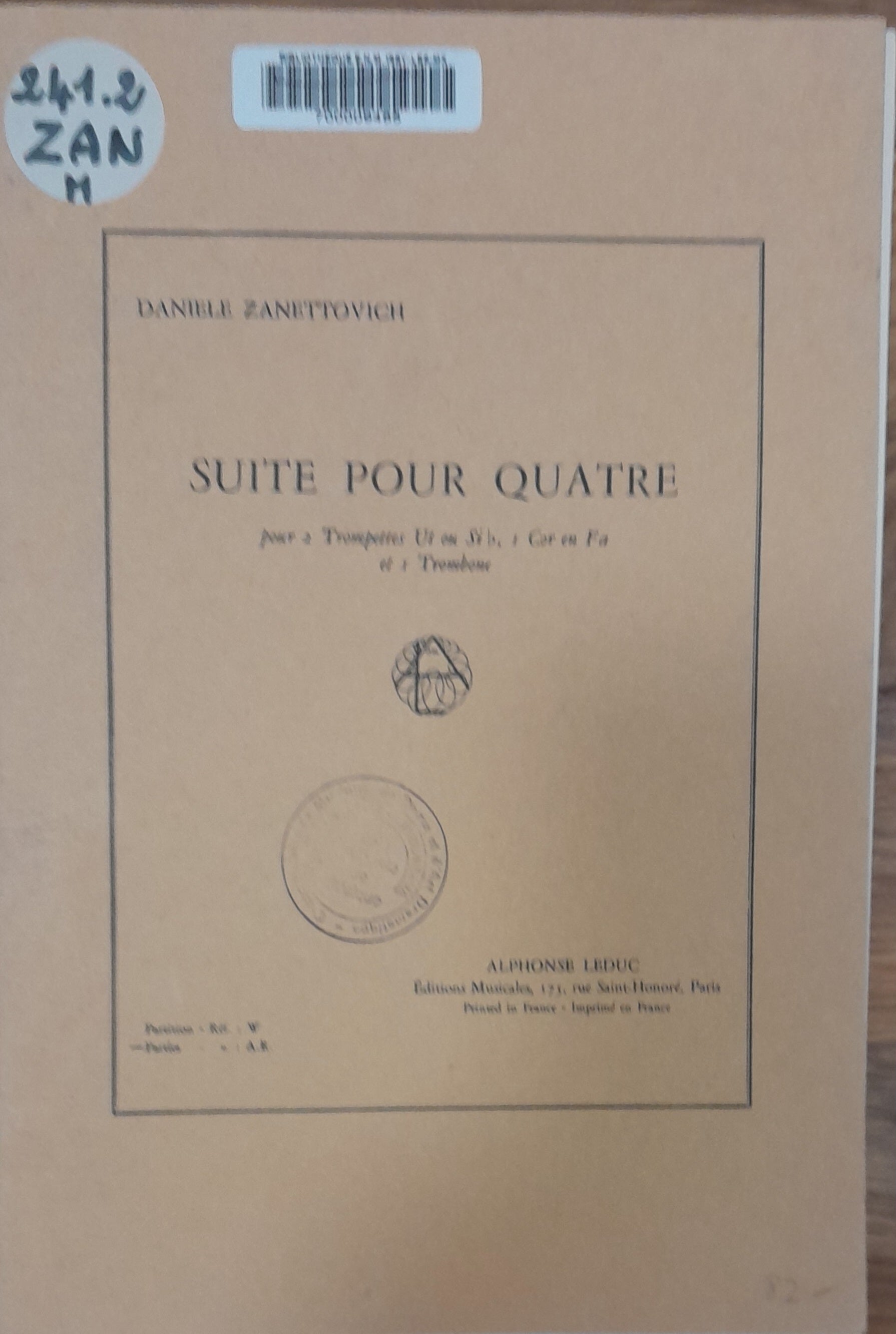 Daniele Zanettovitch Suite pour quatre (parties séparées) quatuor de cuivres