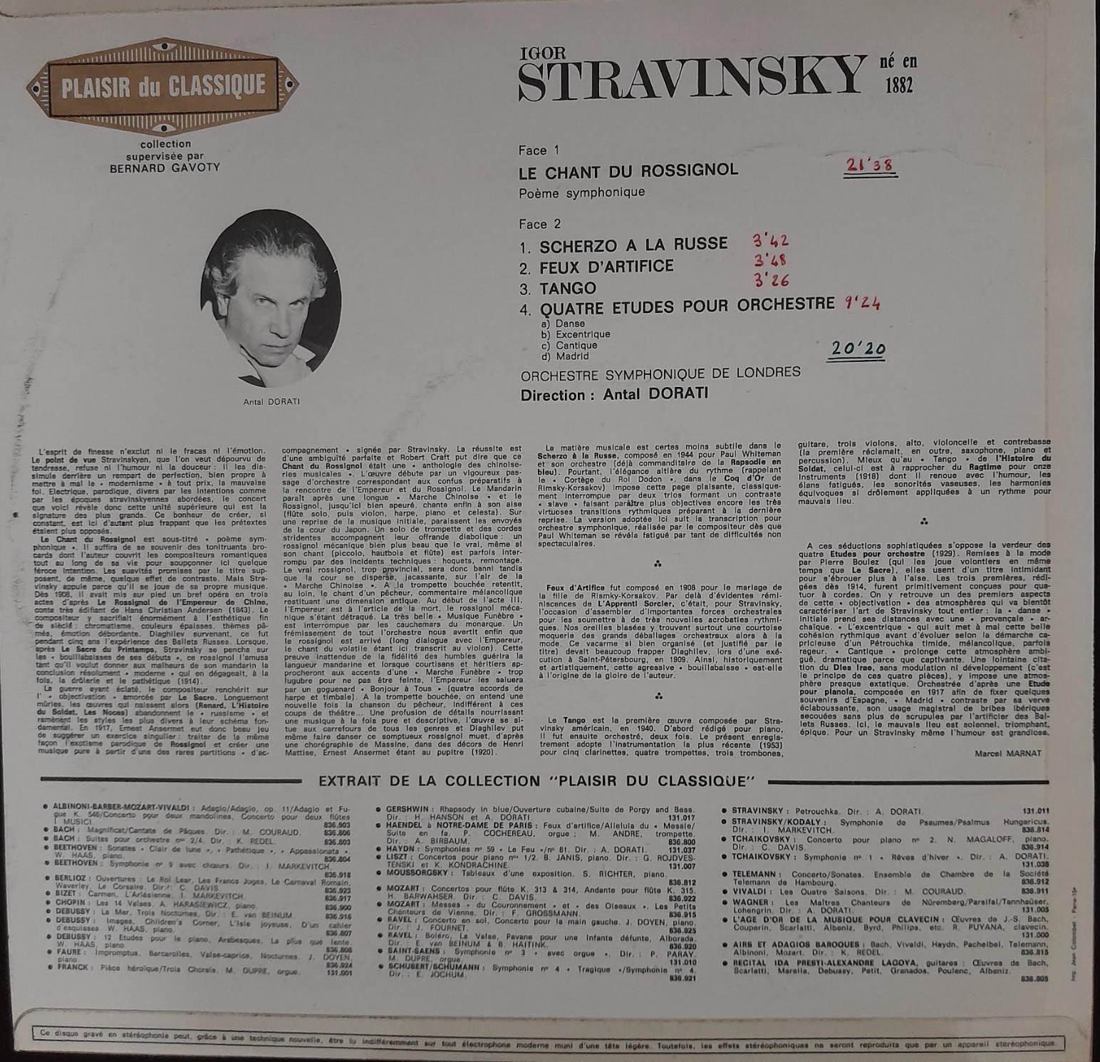 - Contenu : Le chant du Rossignol : Scherzo à la russe / Feux d'artifice / Tango / 4 études pour orchestre