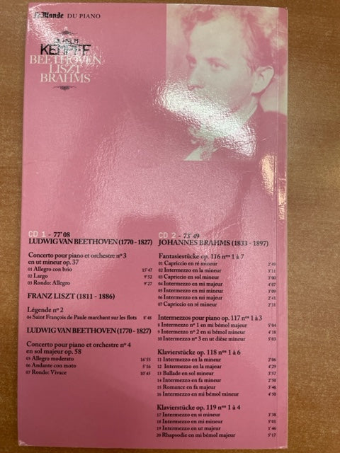 Wilhelm Kempff Beethoven, Liszt et Brahms livret + 2 CD