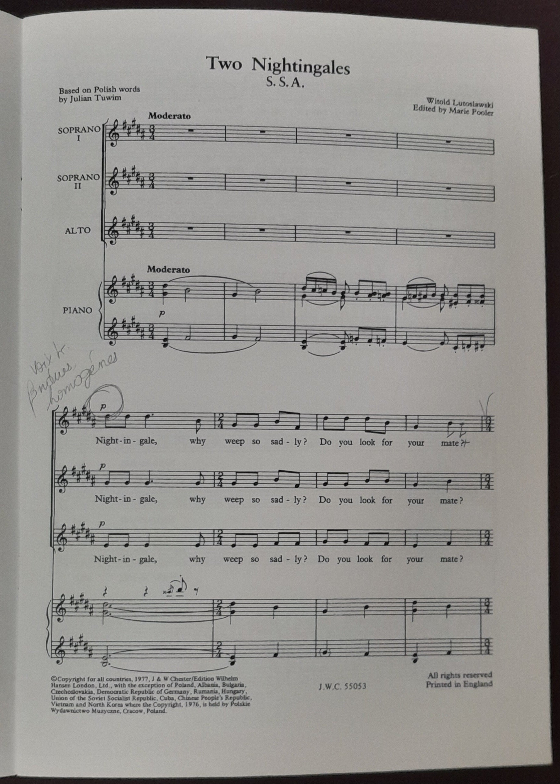 Witold Lutoslawski Two nightingales, pour 3 voix égales et piano